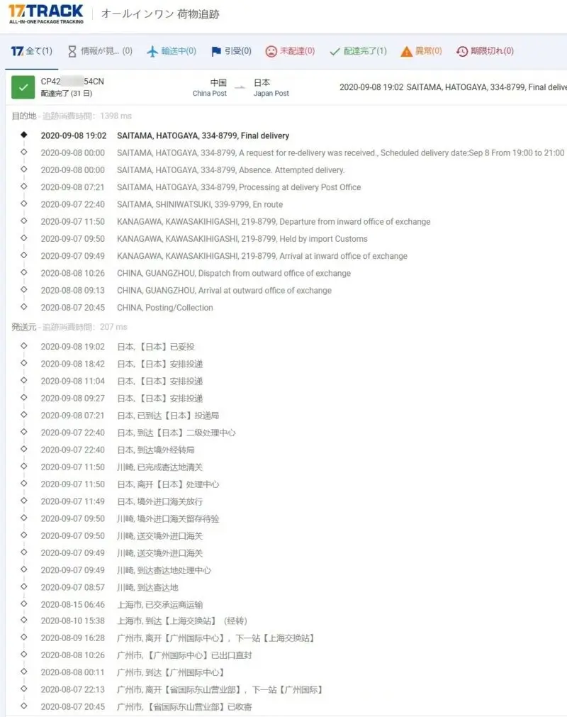 2020-09-08 19:02 日本, 已妥投