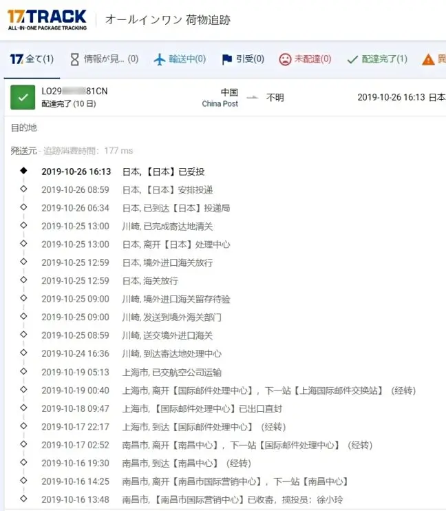 2019-10-26 16:13 日本, 已妥投