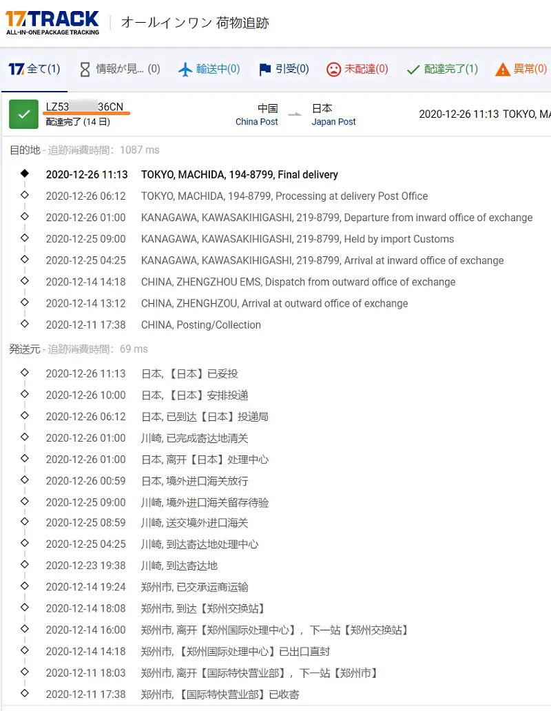 2020-12-26 01:00 川崎, 已完成寄达地清关