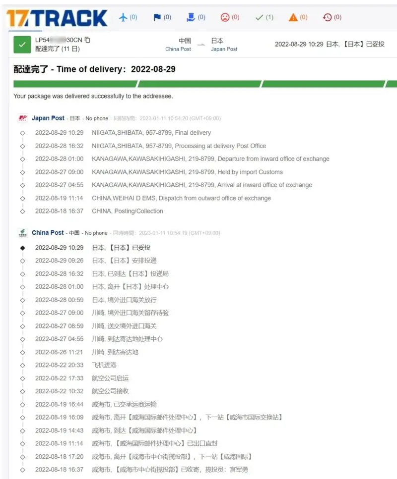 2022-08-29 10:29 新潟県、柴田, 957-8799, 最終配達