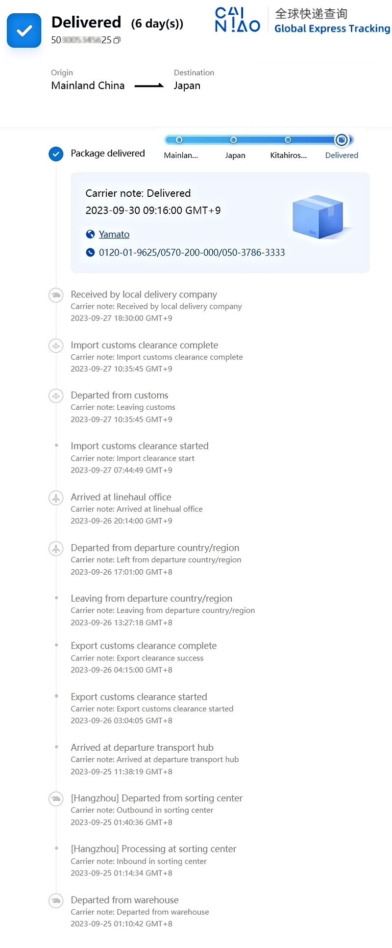 配送種別:AliExpress Standard Shipping → ヤマト運輸宅急便 による